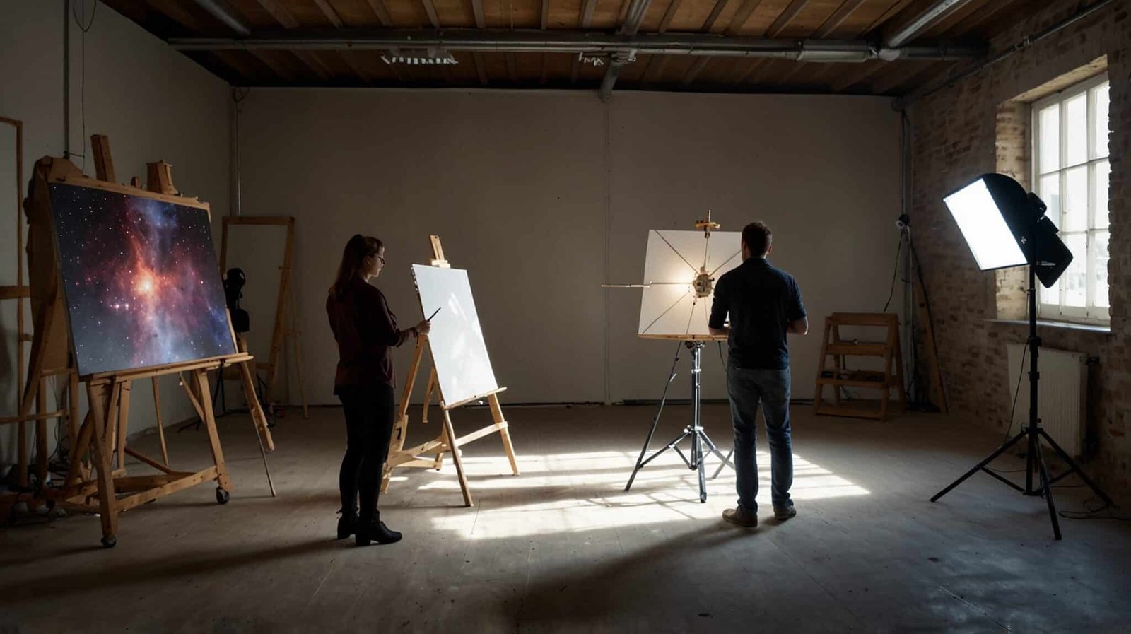 Notre atelier créatif modulable offre des zones distinctes pour répondre aux exigences de chaque projet. Les espaces sont conçus pour faciliter aussi bien le travail individuel que les collaborations artistiques, avec des postes de travail ergonomiques et des zones dédiées aux différentes étapes de création.